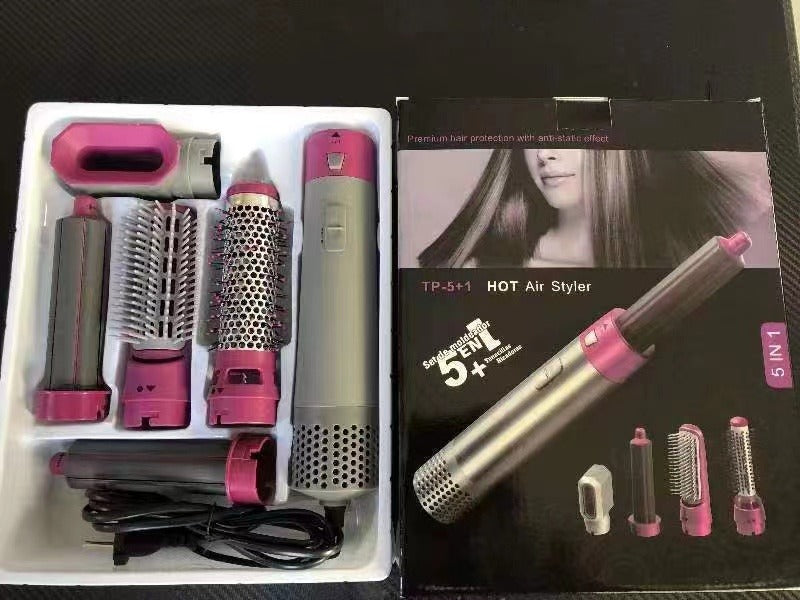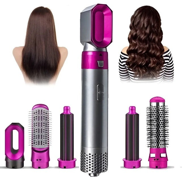 The Hair Dryer 5 In 1 Electric Hair Comb is a versatile styling tool designed to meet all your hair styling needs. This multi-functional hot air brush comes with five interchangeable attachments, allowing you to straighten, curl, volumize, and massage your scalp with ease. It utilizes advanced negative ion technology and ceramic coating to effectively prevent frizz and static. The combination of nylon pin and tufted bristles minimizes tangling and breakage. With adjustable heat settings and a lightweight, portable design, this hair dryer brush is perfect for creating salon-worthy results at home or on the go. Whether it's for everyday use or special occasions, this hair styler brush is your go-to solution for achieving the hairstyle you desire. Use with confidence as it offers convenient and portable styling options