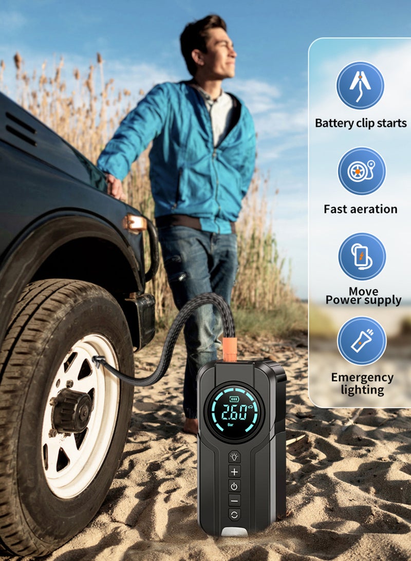 🚲Fast & Accurate Inflation: This powerful compressor delivers up to 150 PSI with an airflow of 38L/min, fully inflating a car tire in under 5 minutes. An upgraded high-precision chip and large LED display show real-time pressure with accuracy within ±0.5 PSI.